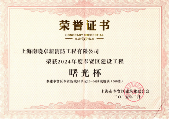 匠心铸工程,品质赢荣誉——南晓卓新消防参建项目荣获2024年度奉贤区建设工程“曙光杯”奖